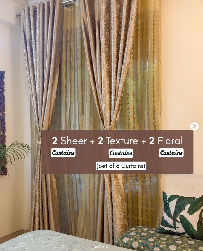 Zaroski Room Darkening Combo Curtains โ Pack of 3 | Floral + Texture