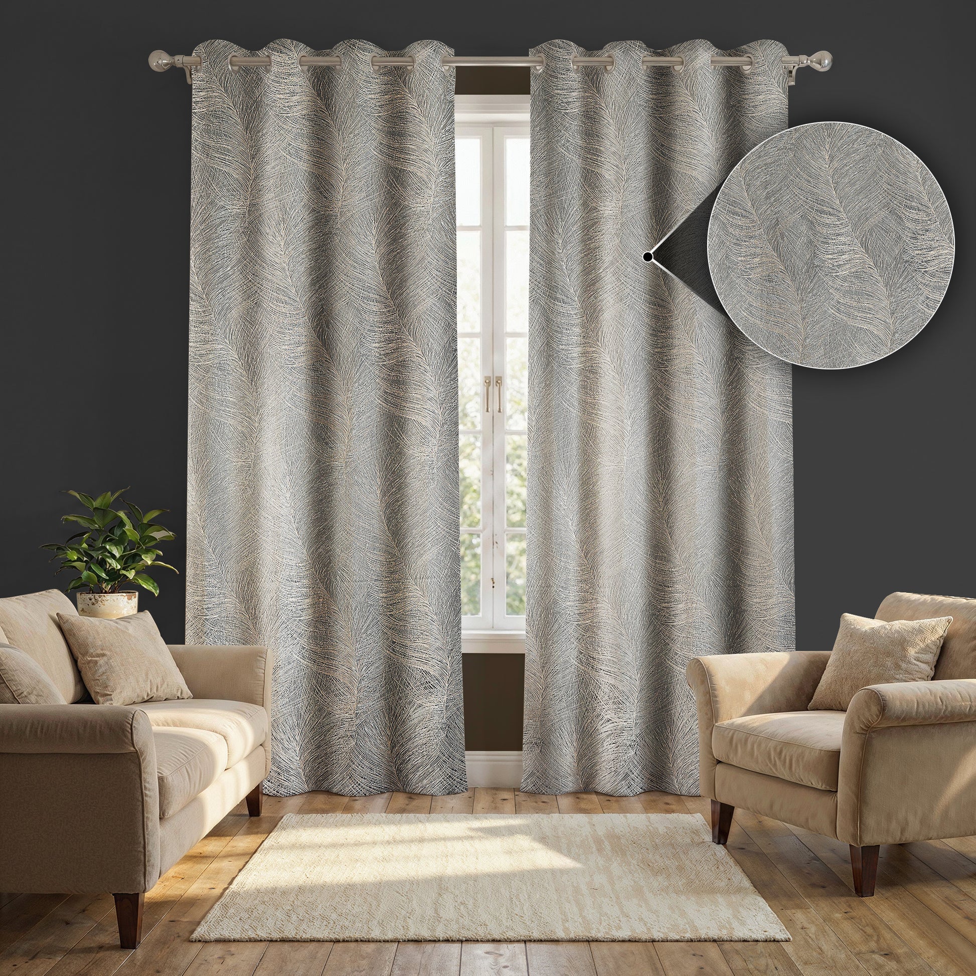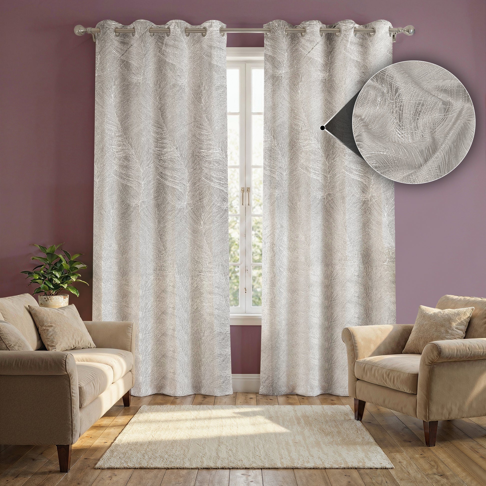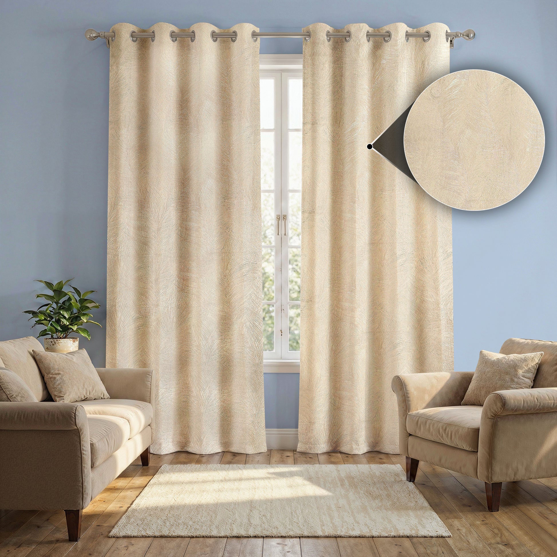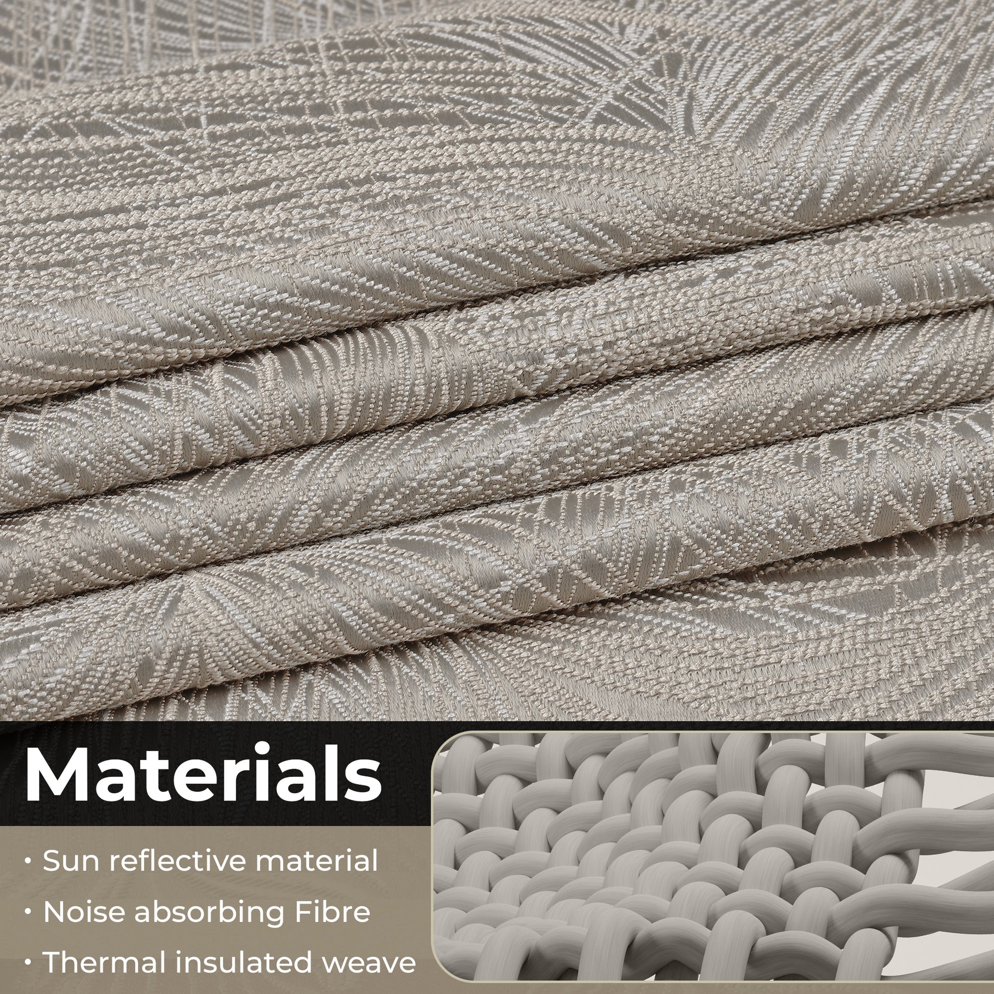 Most curtain patterns scream for attention. Serene whispers sophistication. The oversized leaf print is crafted with double-thread jacquard weaving — not printed, but woven into the fabric itself. This means the design won't fade, peel, or lose its richness over time.